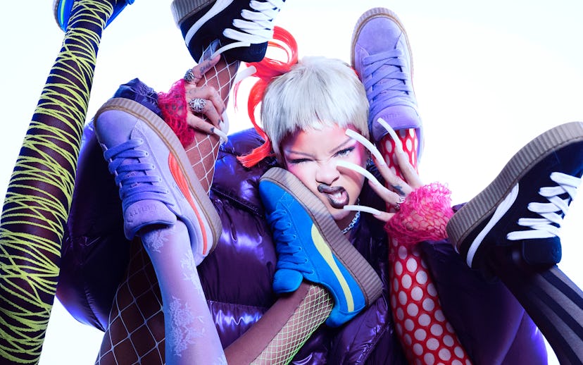 While discussing its slated comeback, Puma’s Global Creative Director Heiko Desens tells NYLON that nostalgia aside, Rihanna gravitated toward the Creeper for its versatility, especially targeting those who don’t want to compromise an outfit for a traditionally sporty sneaker.