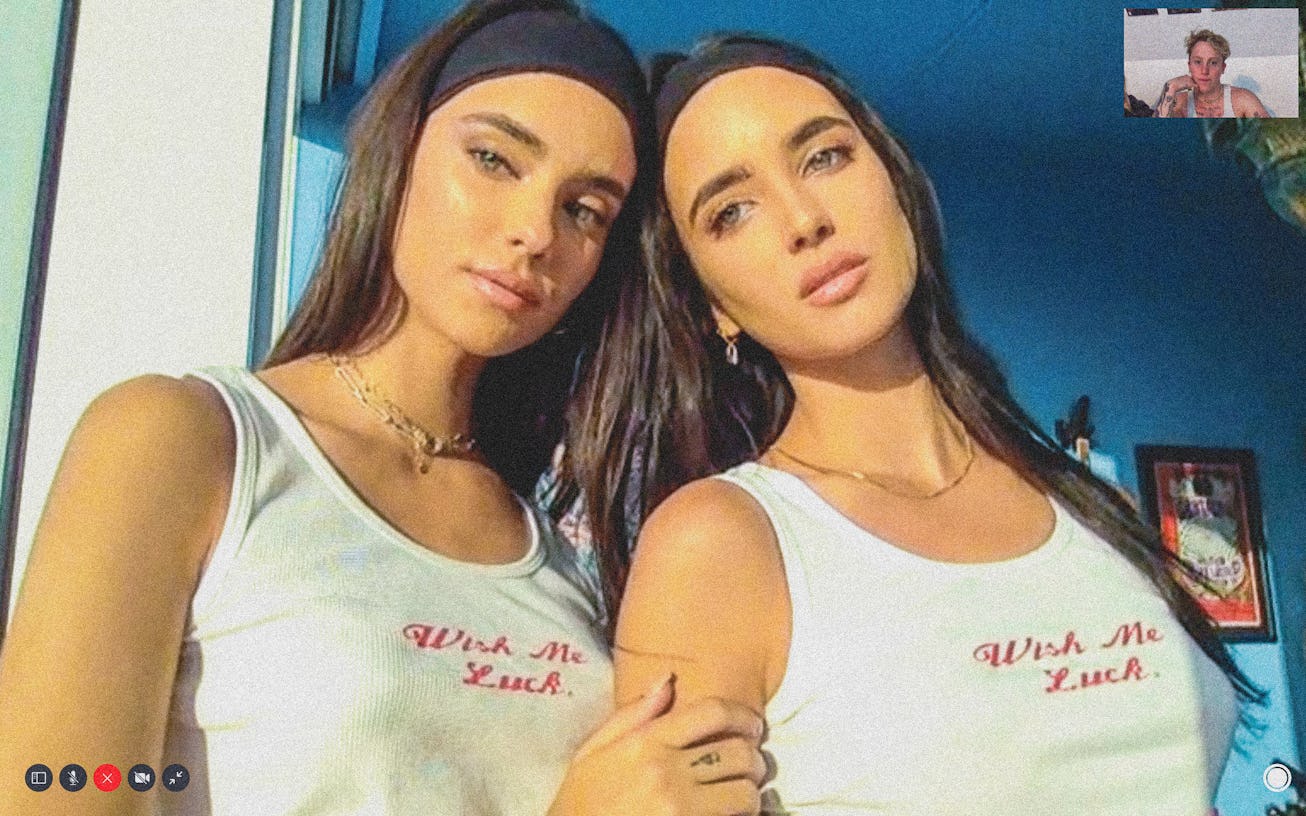 Sam Dameshek, who's based in Los Angeles and has worked on campaigns for Tommy Hilfiger, Puma, Guess, Frankies Bikinis, and more, wasn't used to taking such a long break from his work. So he decided to try his hand at a FaceTime photoshoot after noticing another photographer taking pictures with a webcam. "The first one I did was with my friend Gizele [Oliveira] and I was just laughing the first five minutes because I thought it was so absurd," Dameshek tells NYLON. Next, he did a shoot with twin models Elisha and Renee Herbert for his new clothing brand Wish Me Luck, which has garnered more than 31,000 likes after posting his photo series on Instagram.