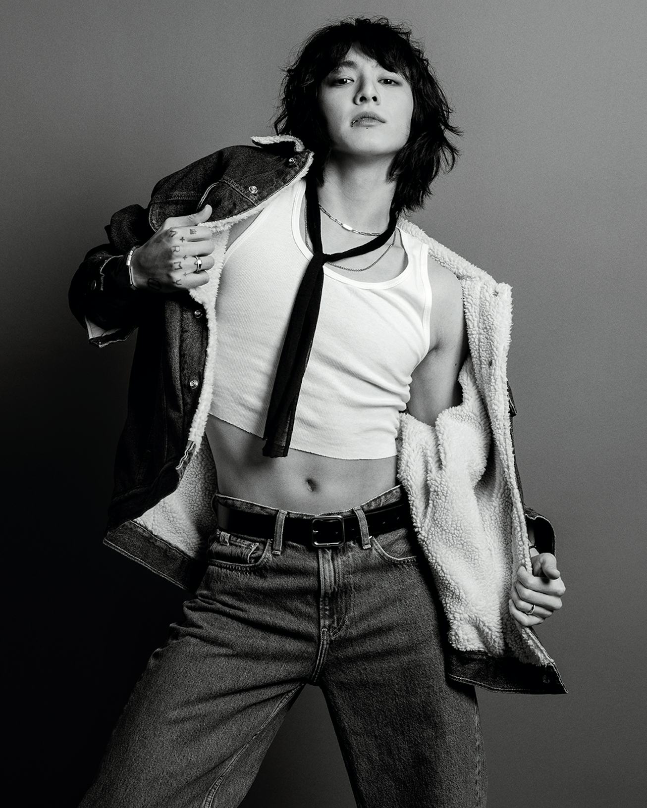 With a mix of black-and-white and color images, the newly unveiled pictures feature its superstar A-listers in Calvin Klein’s revamped classics that feel just as timeless as the brand’s signature aesthetic. The main characters of the campaign, of course, are Blackpink’s Jennie and BTS’s Jung Kook, along with Calvin Klein veteran Kendall Jenner (all of whom generated the brand’s biggest consumer engagements from last season). There are also new faces in the mix this time around: Euphoria star Alexa Demie and musician Kid Cudi make their debuts, wearing dark-wash denim, never-before-seen womenswear, and cotton underwear silhouettes.