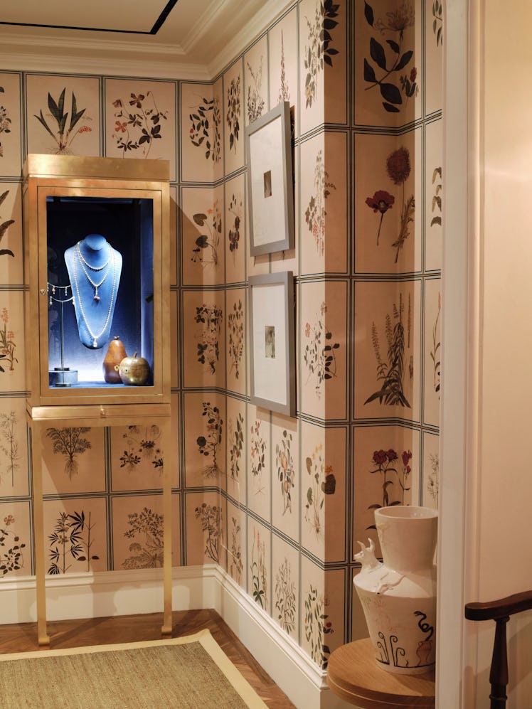 The typically icy world of jewelry shopping — think white-box stores with cold lighting, transactional white-glove service, and anonymity until the receipt is brought out — finds its antithesis in her Carlos Place space, which radiates warmth and familiarity. The wooden floors, plush velvet jewelry cases, and natural light are complemented by an impressive collection of artwork that could rival Tate Modern’s — her collection is as diverse as her references, including a Nick Cave Soundsuit, an Opaline cabinet by Roberto Giulio Rida, and abstract paintings by Katy Moran. As I browsed, a client was perusing rings while chatting with her sales associate about her recent lunch and weekend plans. It felt more like a fireside hang than a shopping experience — something McCormack prides herself on, she tells NYLON: “Being able to give people that full experience is really important to me because it helps them understand collecting, curating, and craftsmanship.”