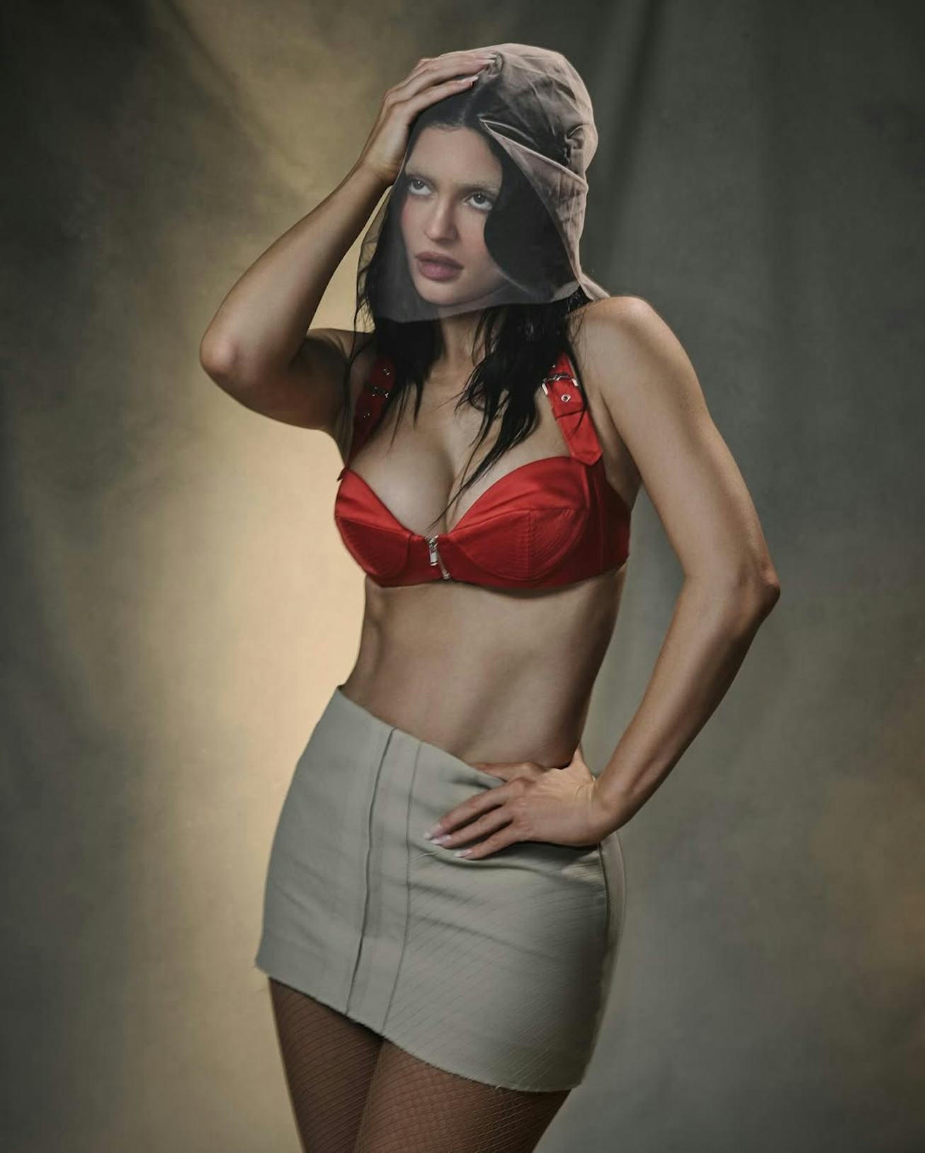 Findikoglu is a London-based designer who takes inspiration from Victorian-era corsetry, dark witches of the night, and yes, the hot girls of today. Kylie is an ideal muse for the 17-piece collection, which emphasizes the female form in all its curvy, seductive goodness. The stars of the show are the satin bullet bustier and the fitted halter dresses with ribbon closures. The long-sleeve mesh catsuit echoes the transparent corset dress Charli xcx wore to this year’s Brits, and the canvas miniskirts recall Kylie’s own Dilara look worn on vacation in 2023. Where there is sweetness, there is also toughness, accentuated by the super-tight jacket and biker capris capped off with buckles.