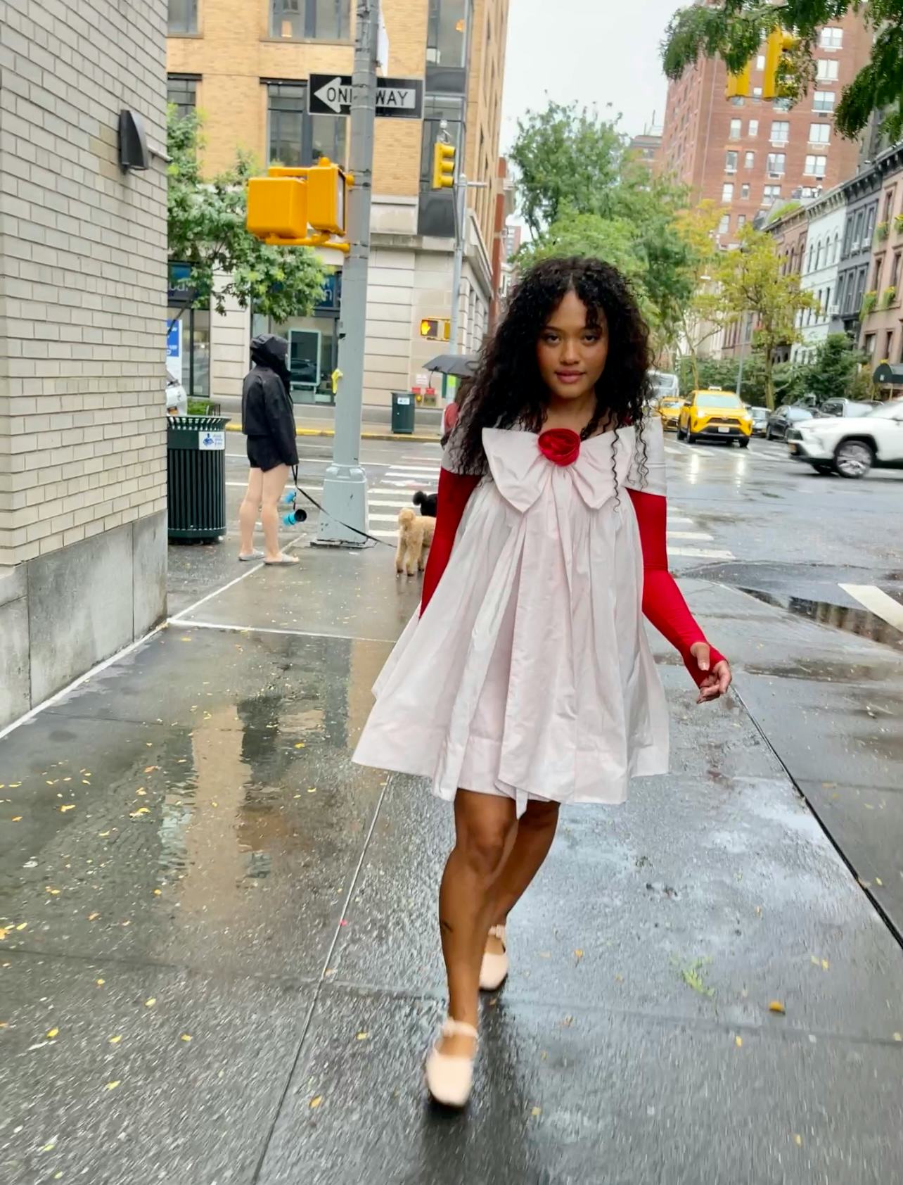 There’s nothing quite like a Sandy Liang girl. On Sunday morning, the Upper East Side became a stomping ground for bows, roses, and ballet flats as the designer and downtown darling showed her Spring 2024 collection at the Cooper Hewitt Museum. Kiersey Clemons came dressed for the occasion, brightening up a rainy day with a colorful pop of red, joining guests like Rachel Sennott and Kristine Froseth in the front row. Here, the actor gives NYLON a look at how she got ready for the show.
