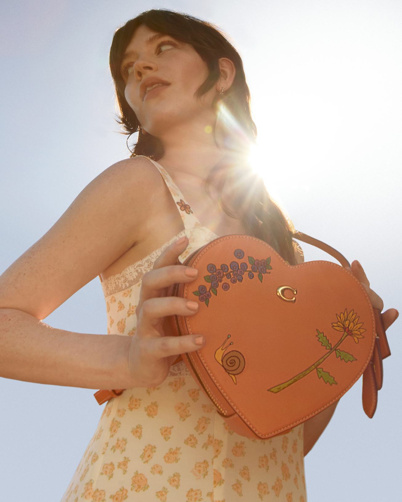Those that can get their hands on Coach’s new collection will be delightfully surprised to find that the pieces include “story patches” written in Herschko’s handwriting that tell the stories of illustrations in the collection. On the Swinger Bag in Signature, a character’s imaginative journey includes a sailboat, strawberries, and dinosaurs (a nod to Rexy, Coach’s house mascot). The collection is available online now.