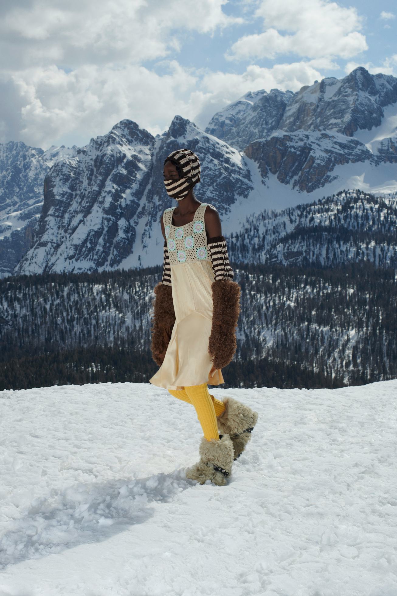Ella Emhoff may not have walked in the Miu Miu Fall 2021 show in Italy’s Dolomites Alps, but her presence was still very much there. For its new collection, titled “Miu Miu Mountain Club,” models traversed a snowy landscape wearing knit face masks and arm warmers. Perhaps a nod to Gen Z’s most famous knitting enthusiast?