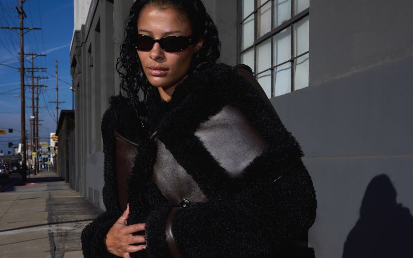 Miró, for the unaware, is an expert re-worker of pre-loved pieces, turning scraps and dead-stock fabric into party-girl staples like wrap skirts, shredded jeans, and wee little tops for pairing with your largest pants. She’s bringing her second-to-none vision to an edit of Rent The Runway’s offerings, which include a J.W. Anderson asymmetrical denim skirt, a Retrofête sparkly party dress, and a few desirable shearling jackets. "This is an invitation for both of our communities to rethink their relationship with fashion and embrace a more circular, creative approach,” Miró exclusively tells NYLON. “Together, we’re proving that style isn’t about always having something new — it’s about expressing yourself in a way that’s both thoughtful and impactful, seeing the beauty in what already exists."