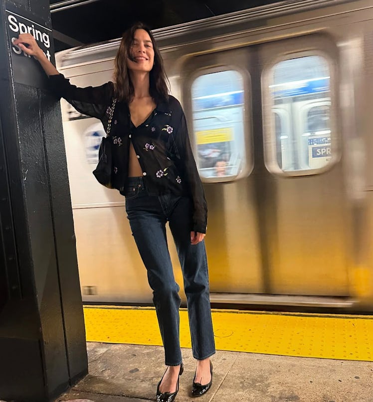 Alix Earle made a spray-on-skinny jean with Frame earlier this year, and while some are committed to the thigh-to-toe skin-tight version, a less restricting yet comparatively slimmer silhouette is emerging as champion. Stovepipe and cigarette fits feel fresh in comparison to the low-slung, leg-obscuring pairs recently gaining traction. Re/Done’s fall campaign, as seen on Grace Burns and Meadow Walker, featured the leg-lengthening take on “slim”; the Spring/Summer 2026 runways also stretched jeans out, like at Dior, Area, Burberry, and Khaite, where the fit was slightly more midrise, slimmer on the thigh, and straight from the knee down.