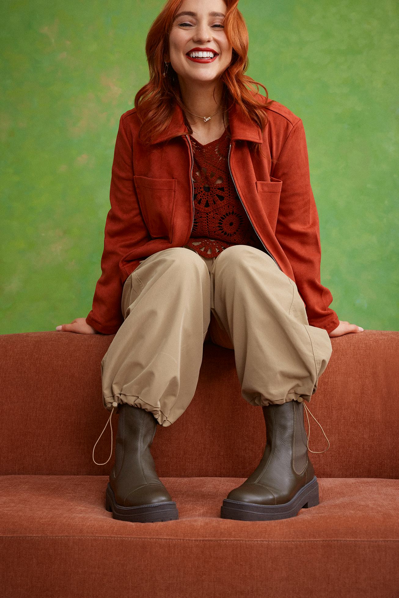 Neibart opts for a lug-sole version herself, but whether you choose a platform or timeless heeled version, the Chelsea boot will lend an effortless polished touch to any look. For Neibart, it adds the ultimate finishing touch to an elevated everyday fit: sporty pants and a coordinating jacket-and-top combo.
