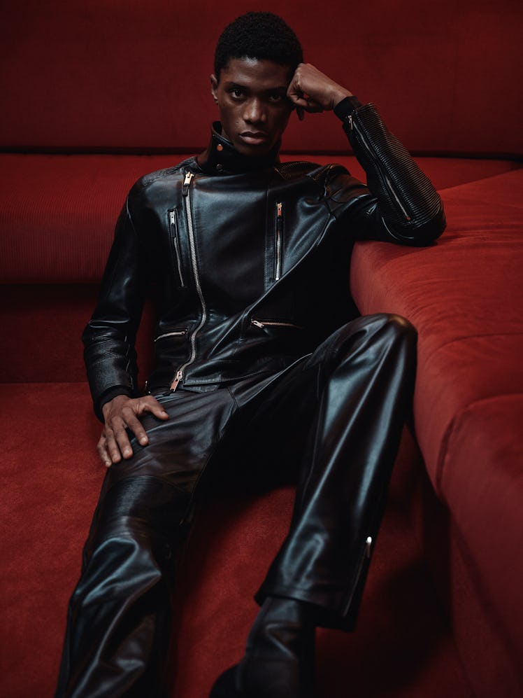 Indeed, since de Saint Sernin’s bread and butter is slinky, sexy pieces made for the red carpet, the hero pieces here are the party dresses (who’s surprised?). Amelia Gray and Alex Consani were natural choices to flaunt the collab, as they’ve both walked for and worn de Saint Sernin’s main line since its inception. If the occasion-wear pieces feel too special (or too skin-revealing) for you, worry not: De Saint Sernin’s leather pants, belts, and jackets are equally as kinky and gratifying, without the worry of highlighting your collarbone for the club. De Saint Sernin has previously collaborated with the Robert Mapplethorpe Foundation for one of his runways, which took place in New York, and the collection honors both Mapplethorpe’s penchant for biker-wear as much as it does the pulsating energy of a night out in Manhattan.