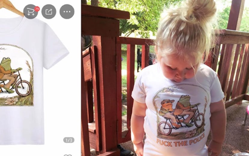 This week, a mom from Illinois got a surprise after ordering a cute T-shirt for her three-year-old daughter. In addition to featuring characters from children's book Frog and Toad, the tee had the phrase "fuck the police" written on it. I need this in my size.