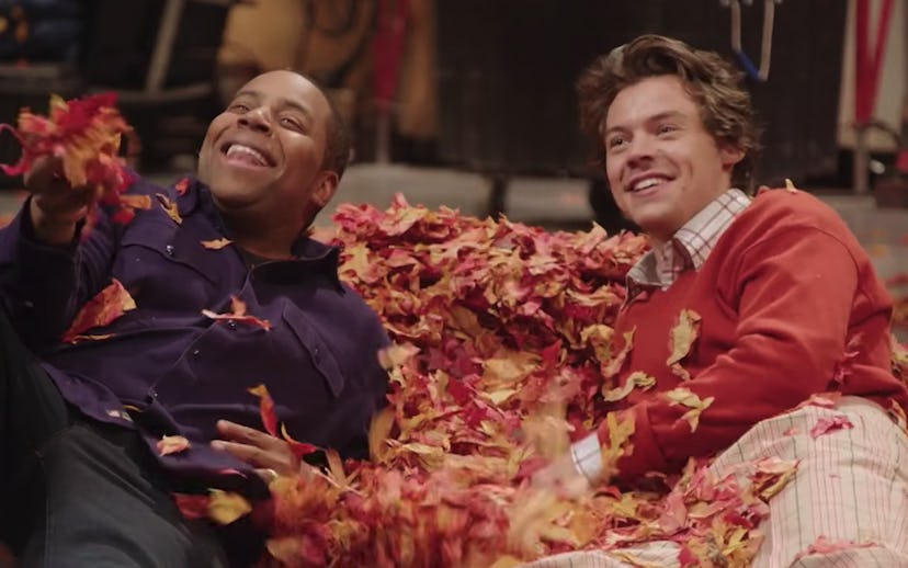 The first teaser for Harry Styles' upcoming double-duty gig on Saturday Night Livehas arrived, and it's both endearing and all-too-short. Though all of New York City knows that fall already came and went before anyone had the chance to enjoy it, Kenan Thompson isn't going to let the season slip through his fingers. He invites Styles to join in on the wholesome fun as he welcomes the singer back to the studio to host and perform on the show.