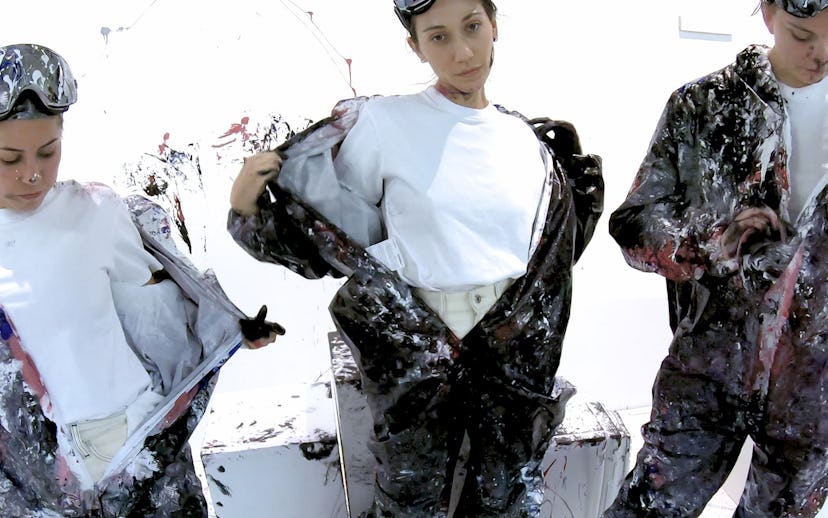 To celebrate this launch, the brand teamed up with musician Tei Shi and playwright Jeremy O. Harris, along with friends and the cast of "Slave Play," to throw paint on random objects in a (formerly) clean, white room at the New Museum. The whole experience, which you can watch in the video, below, seems like one of those Wreck Rooms except those involved are less prone to injury and more inclined to still find paint on themselves a week or two later.
