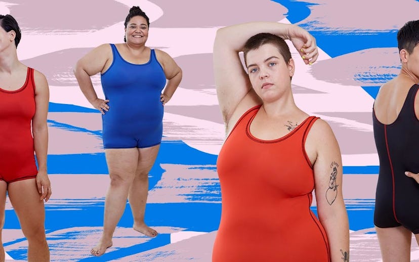 Early on in Rachel Berks' relationship with her partner, artist A.L. Steiner, they took a trip to Miami to visit family. During that vacation, Steiner wore a black swimsuit unitard to the beach. Berks told me, it "was a nice idea for someone who self-identifies as an androgyne." Yet, speaking from a fashion standpoint, Berks noticed some issues with the design of the swimsuit: "The neckline was really low, the shorts were too long, there was an unflattering seam up the front, and the suit had a shelf bra which offered no chest-support, [and] pushed her breasts into the middle of the suit," Berks explained. It was then that she and Steiner started discussing ideas for a suit that would better cater to someone looking for a more androgynous option, while still maintaining a sense of style.