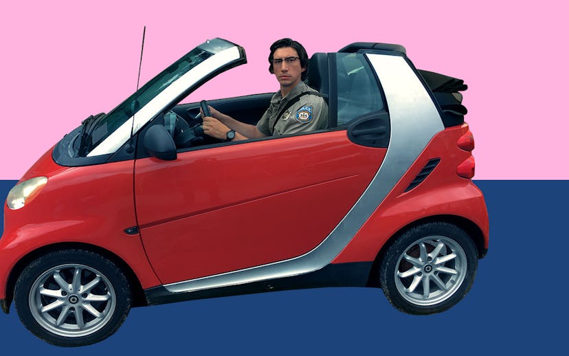 The best sight gag in The Dead Don't Die, which is currently in theaters, is when Adam Driver shows up driving a smart car, folded up into his compact two-seater like a creaky Murphy bed. Watching one Adam Driver getting out of a smart car is as funny as watching two dozen circus clowns getting out of a Volkswagen Beetle. There's no other way to read his choice of car than as a way of overcompensating for a surfeit, rather than a deficit, of masculinity. It's an apology: Sorry for taking up so much space. It's not my fault being the biggest and the strongest—I don't even exercise.