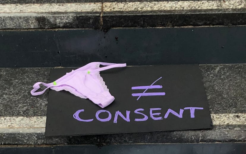 Women in Ireland have funneled their outrage at a sexist court decision into a social media campaign, #ThisIsNotConsent. BuzzFeed News reports that in a recent rape trial in Ireland, a lawyer held up the underwear worn by a 17-year-old girl as an argument to prove consent. "You have to look at the way she was dressed," lawyer Elizabeth O'Connell said. "She was wearing a thong with a lace front." Her alleged rapist, a 27-year-old man, was found not guilty.