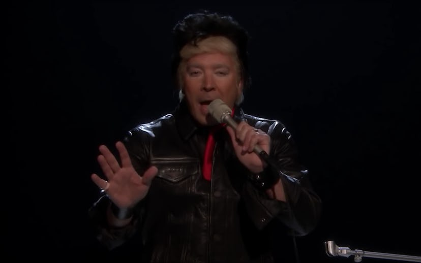 Last night, Jimmy Fallon gave his best impersonation of Trump impersonating Elvis Presley, and it's pretty confusing as to why he—or anyone—thought this would be funny. Fallon must have been inspired earlier this week, when Trump boasted his youthful physical similarity to Presley to a rally crowd in Mississippi. And, yes, the idea that Trump looked like Presley is funny, but it's still no excuse for Fallon's subsequent, uncomfortable rendition of "Jailhouse Rock" on The Tonight Show.