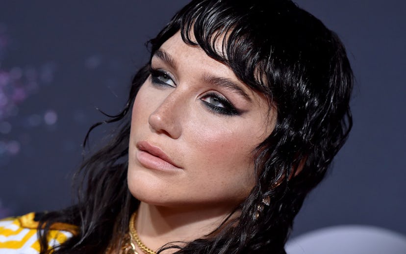 Kesha's visit to The Late Show was in support of her forthcoming album High Road, due for release this on January 31. Throughout the album cycle, Kesha has enlisted her new makeup line, Kesha Rose Beauty, to create her dramatic, glitter-filled looks, so we wouldn't be surprised if her bright FTW Eyeshadow Palette was used when she channeled her inner Aladdin Sane. Yes, it's that heavily pigmented in real life (I've tried it).