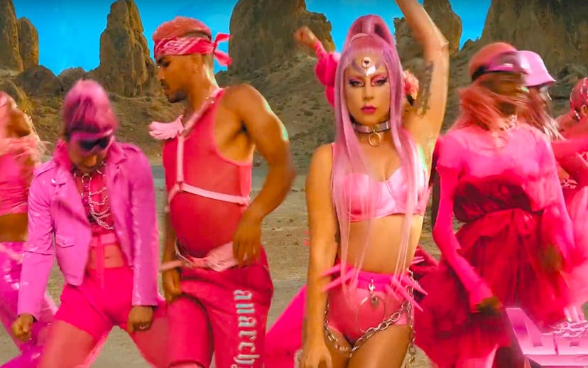 Lady Gaga's latest single "Stupid Love" — a song you've definitely never heard before because that would have been illegal — is here, and Little Monsters who have been waiting since 2016 for the singer to shift gears from the twangy, country-inspired heyday of Joanne and A Star Is Born back into classic, cathartic Gaga pop can finally shake their asses again. The video for "Stupid Love" is an all-pink, intergalactic dance off that's fun as hell, and seems to confirm that her highly-anticipated sixth album will be a return to the infectious pop Gaga does best.