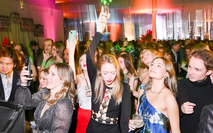 Upon entering, guests were greeted with hot towels lightly scented with Aesop perfume, and the initial confusion led to eventual delight. I didn’t exactly expect a spa experience, but who can be mad at a moment with a hot towel? But soon, people were clamoring for glasses of sparkling wine, Casa Dragones Blanco tequila, or the night’s signature drink: the Noon NightCap, named after the visual artist Kambui Olujimi. As is usually the case with a museum party, the crowd was a mix of tuxedoed wealthy donors and stylish elder-millennial art and fashion people. Naturally, there’s no band that is the physical manifestation of that demographic more than MGMT, who performed a DJ set of propulsive dance music fit for a club like Good Room — which meant there was a small but committed group of dancers hugging the decks.