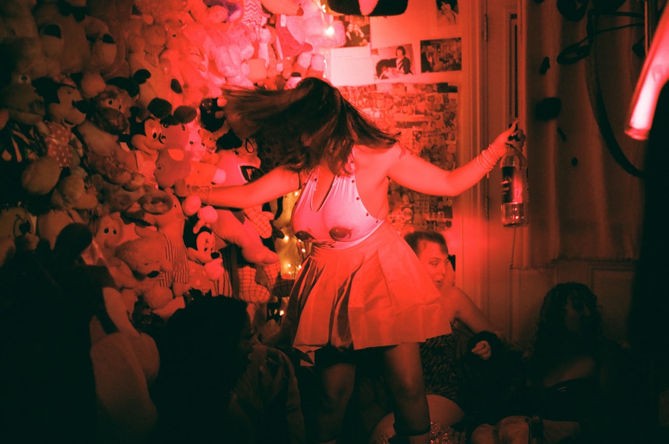 The LP is versatile and captivating, bringing 90’s rave beats, grinding acid techno, hard trance, and more in one place, all wrapped together with earworm hooks that are sure to wobble around in your head all party long. Premiering on NYLON is the video for the duo’s latest single, the hazy and seductive track “To Myself.” The video is a psychedelic love-fest — Chippy and her girls find freedom in woozy benders, rides to the afters, and most importantly, through each other. The video’s visuals are inspired by queer film auteur Gregg Araki, says Chippy, echoing the Araki’s standard thesis: a general f*ck you to the outdated rules of society.