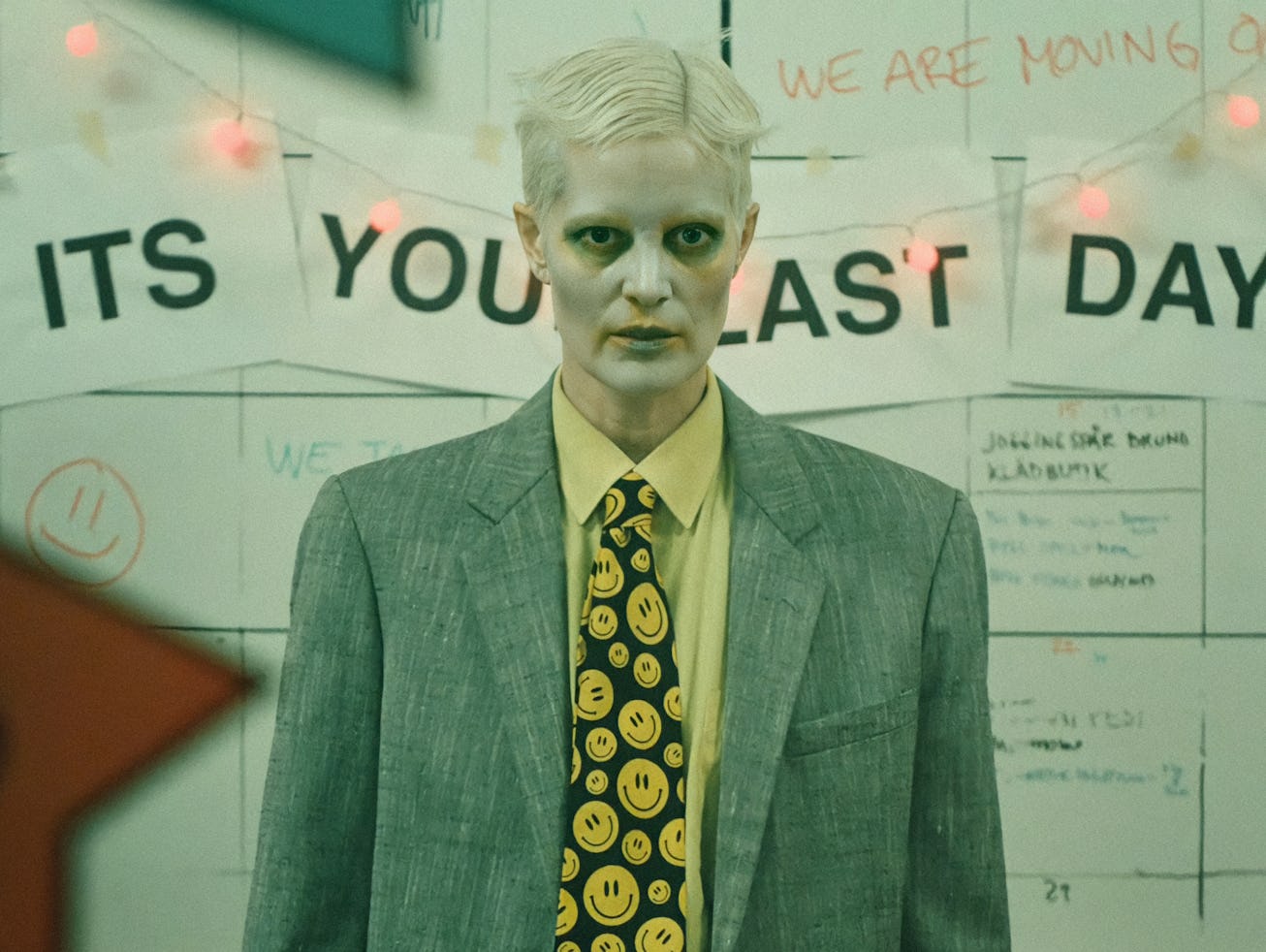 The video opens with Dreijer, dressed not unlike a haute couture Beetlejuice in a smiley face tie and ghostly white face, microwaving a Hot Pocket and sitting at a glitching computer next to a hallowed out watermelon in a partially destroyed office. “First I’d like to say that I’m sorry/ I’ve done all the tricks that I can/ cinnamon bun in the oven/ there’s a fire in my hand,” they sing in an emotive, strained cry, their face covered in teal makeup with flecks of orange. The office is more funhouse than functioning; there’s a sign haphazardly hanging from a single tack that reads “Hard works pays off;” one of the coworkers has red laser beam eyes; there’s a room filled entirely of plants in which Dreijer hides in. Later, we see Dreijer dissociating during a lackluster office party, presumably celebrating their last day at the company, which then turns into a rave with workers kicking their loafers into the air and taking to stripper poles. As always, Fever Ray excels at turning seemingly mundane and even eerie things into something erotic.