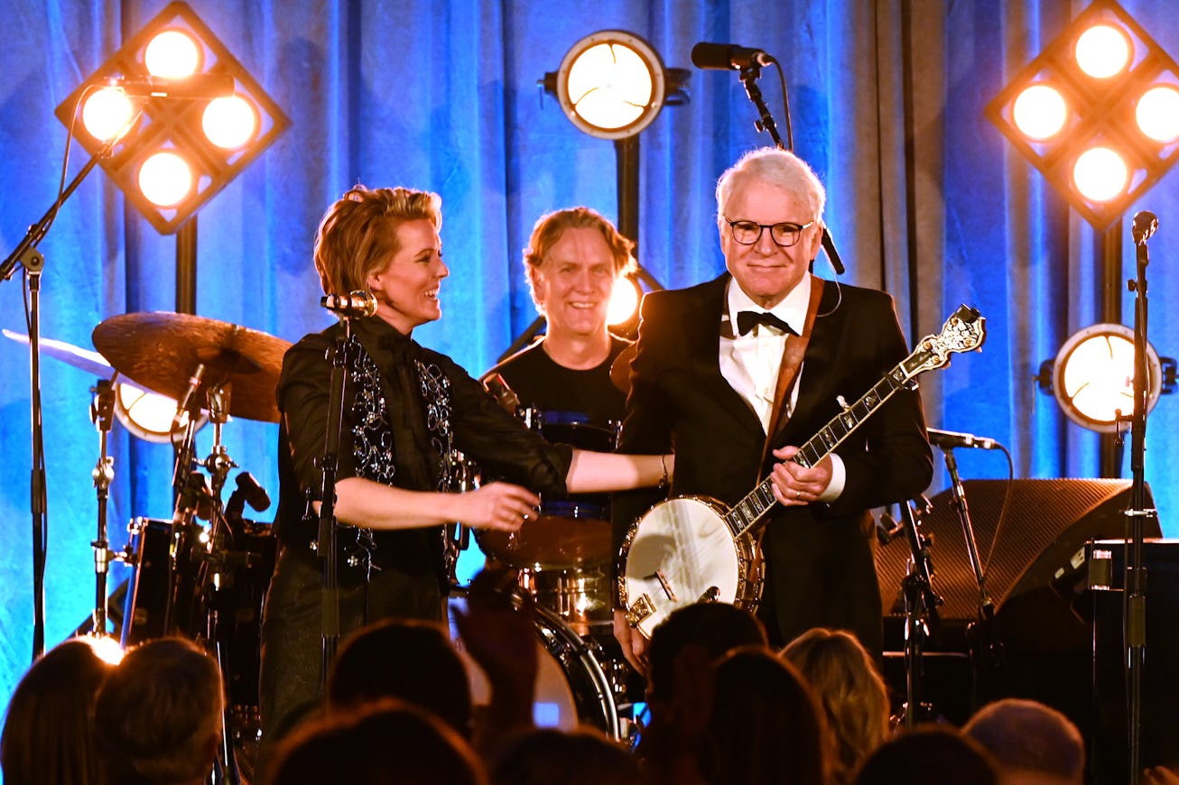 Guests raised a whopping $2.5 million, with donors holding glowsticks to donate tens of thousands of dollars to go towards the museum’s educational programs. Carlile performed a solid 30-minute set including crowd-pleasing covers like David Bowie’s “Space Oddity,” and Radiohead’s “Creep,” which middle-aged women in fur, sequins, and kitten heels swayed to, glowsticks in the air like lighters at a rock concert. At one point, Steve Martin joined Carlile, playing the banjo. The evening ended with pretzels and hot chocolate, where the SNL cast congregated in a small circle and Baldwin posed for a photo with a fan. I walked by Michael Longfellow on the phone with presumably an Uber driver. Finally, no more table assignments to prevent anyone from catching a glimpse of the stars.