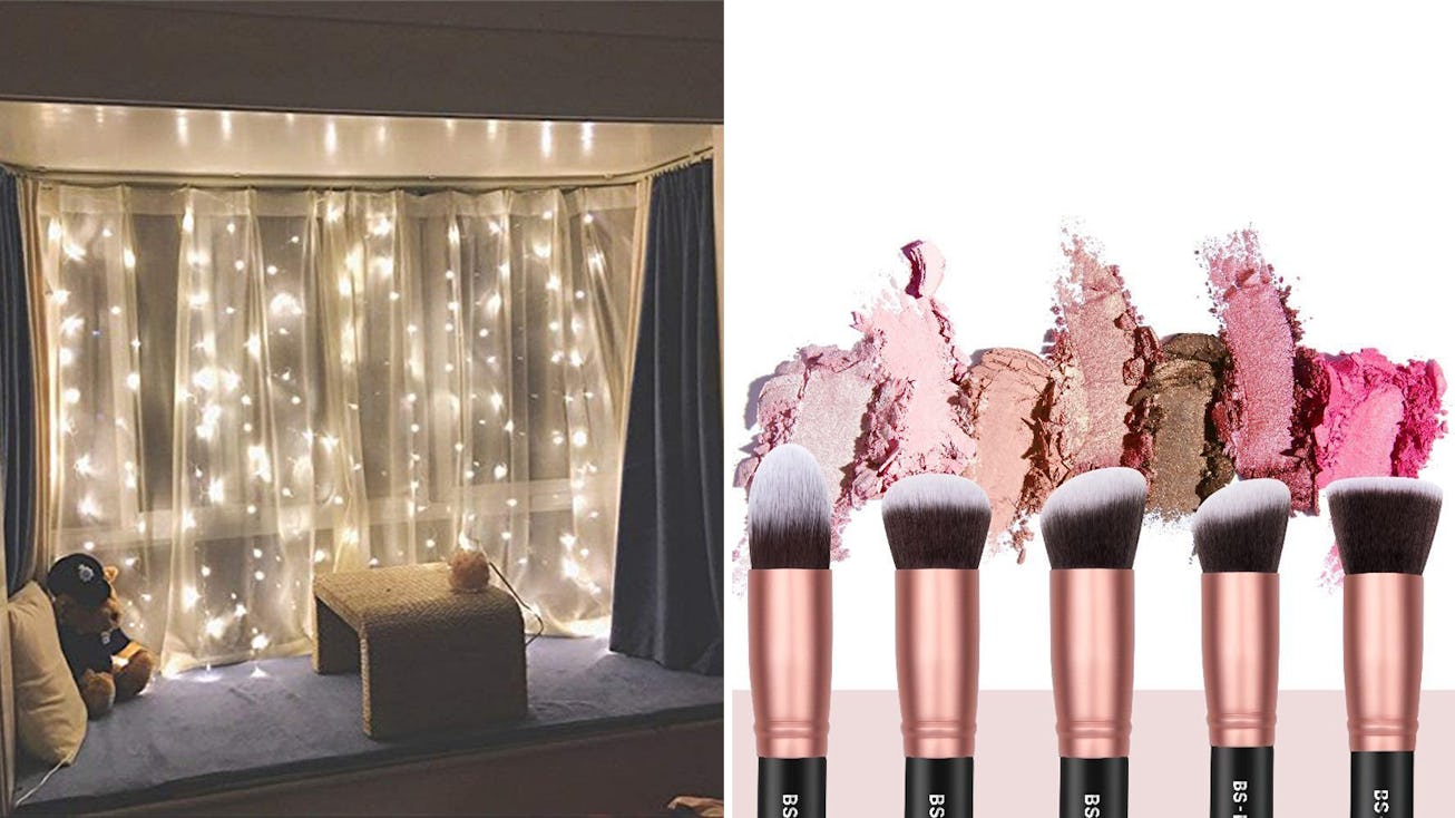 This gorgeous panel of string lights creates a twinkling candlelit glow for major impact on a budget. Offered in warm white and rainbow hues, you can create any mood you want with eight different settings. The individual strands have semi-translucent cords, so they're unobtrusive when not in use and — at roughly 6-by-9 feet — they'll work with most ceiling heights. Fans have added them to canopies, curtain rods, ceilings, and bookshelves — the limits do not exist.