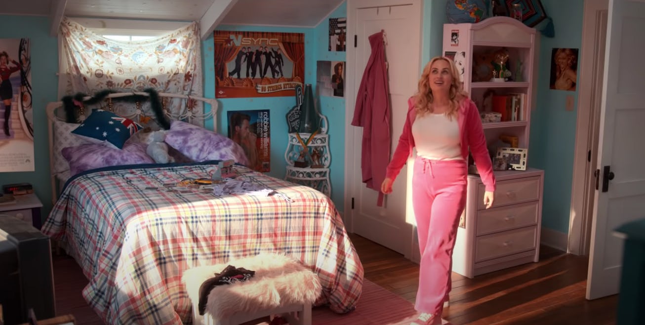 Her parents kept her room a relic of 2002, which is covered with Britney Spears, *NSYNC, Pink!, and Clueless posters — and her closet remains an impeccable time capsule of Y2K fashion, with Juicy tracksuits, hot pink lace-up tops embedded with rhinestones and metallic heart chain belts — you know, what the best-selling items on Depop are now. Seeing an adult simply wear clothes from 20 years ago and fit in impeccably is a wild commentary on the trend cycle. Unlike movies like Never Been Kissed, where Drew Barrymore revisits high school and wears embarrassingly off-trend ’80s getups, Wilson actually looks like the best-dressed person at the school.