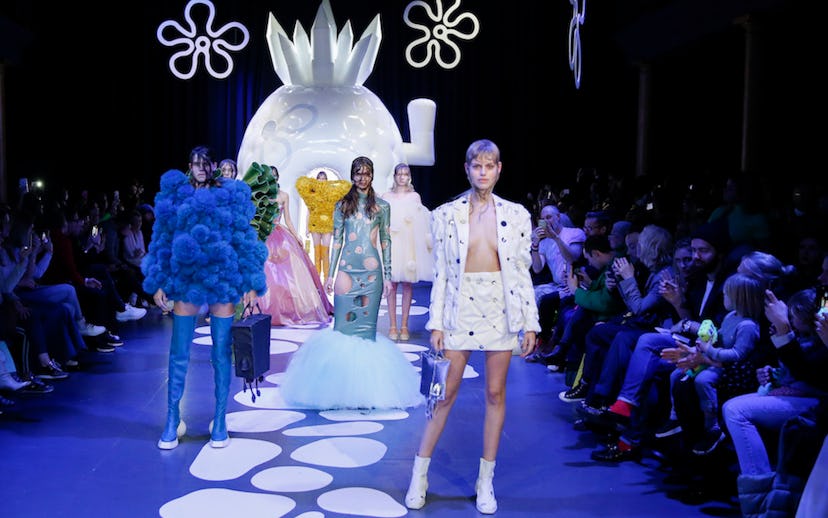 At Amsterdam Fashion Week, designer Marlou Breuls took attendees under the sea for a high fashion reimagining of SpongeBob SquarePants, complete with a pineapple home at the top of the runway. The collection is a licensed collaboration with the iconic Nickelodeon animated series, in celebration of its 20th anniversary, and it's everything I could dream of as a fan of the show growing up.