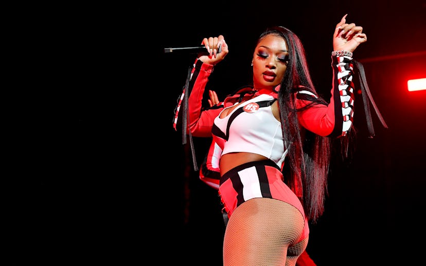 When you use #megantheestallion, which is currently trending, on Twitter, you'll see it followed by a miniature mouth, with its tongue out, surrounded by flames. We do not support reducing women to their body parts, but Megan's tongue is important. First of all, it is the vehicle for her creatively sharp bars. It's also often on display, especially when she delivers her signature ad-lib: "agh." (The spelling of "agh" has been hotly contested amongst NYLON staff, but you'll know it when you hear it.)