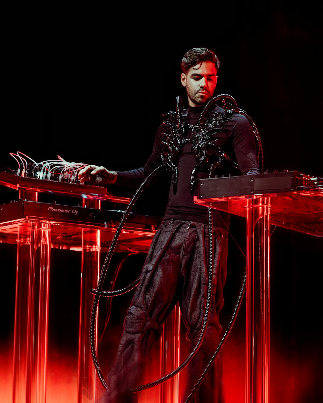 At the opening event, Anyma was in the house, closing out the night with an eye-catching set that bordered more on performance art than your typical DJ behind a turntable. The trip — his first time in Seoul — was the kickoff to a whirlwind spring, which included a hotly anticipated slot at Coachella (where he also confirmed his relationship with Grimes), the Ibiza debut of his Genesys show, and a slew of sold-out shows across Europe.