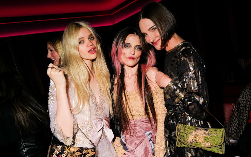 The downtown kids running around before the big holiday break took their black cars uptown to the Valentino party in celebration of their latest bag, the DeVain, at Chez Fifi. Hari Nef, Dove Cameron, Charlotte Lawrence, and Sky Ferreira piled into the bespoke photo ops and light-up dance floor for a night of bag-swinging and french-fry-nibbling.