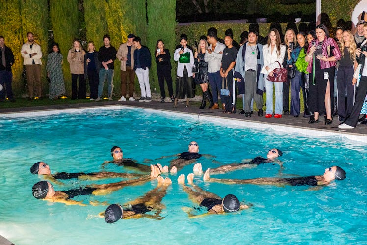 As if Wearstler wasn’t busy enough running a design empire, she launched Side Hustle, a curatorial physical-digital curation space and gallery that aims to connect as many disciplines in the art space as humanly possible. Case in point: The cocktail party to celebrate had a synchronized swimming performance; a debut of Again, Differently, Side Hustle’s first exhibition; and live music from Drew Byrd. The crowd was equally as genre-bending, with Tracee Ellis Ross, Logan Lerman, Eli Russell Linnetz, with more artists, musicians, and tastemakers in the mix.