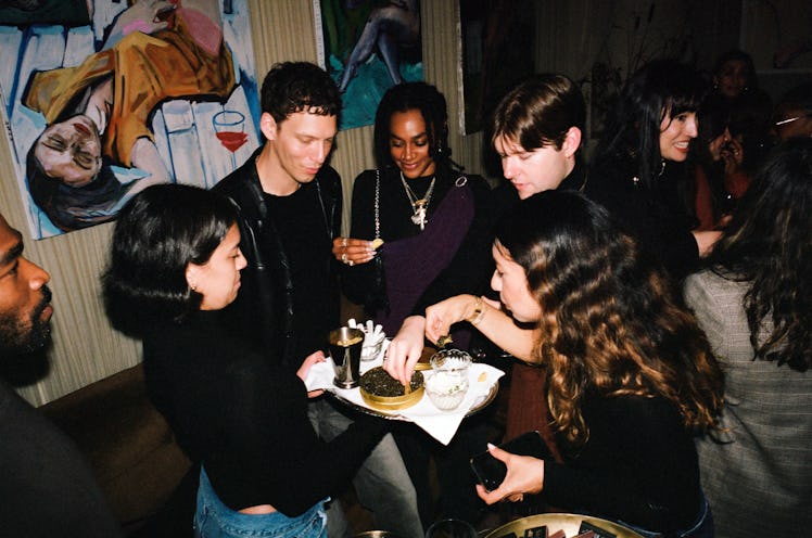 The brand’s first Social Club event brought a fashionable set out on a Tuesday to People’s, where massive tins of caviar circulated and guests showed off the jeans brand’s covetable duds. There was no particular launch behind the gathering, just the desire to spark creative conversations and see what happens when minimal phone time and maximum wine corkage happen.