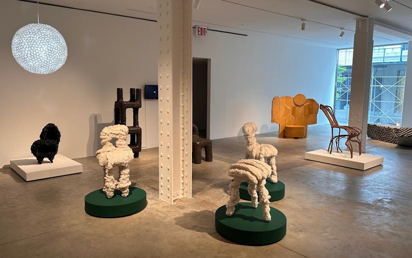 I’m starting the night at Friedman Benda, where director Erica Boginsky is showing Under Present Conditions, a not-to-be-missed series of pieces from designers including Estúdio Campana, Max Lamb, and Studio Raw Material. There are plenty of people circulating between the front design gallery and the back room, where works are hung on the walls for all to enjoy. I pour myself a cup of wine from a table of open bottles (told you) and remind myself the beautiful chairs are art, not furniture.