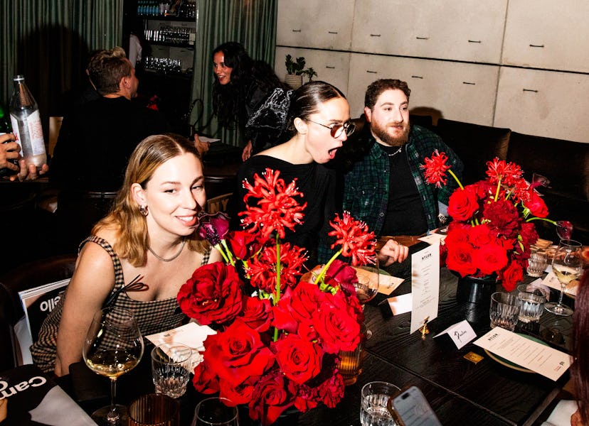 During the cocktail hour, Pellegrino was quickly swapped for as vodka martinis and margaritas as Editor-in-Chief Lauren McCarthy welcomed the first punctual guests: Ella Emhoff and Phoebe Gates, who talked about the latter’s soon-to-launch fashion app. Photographer Hunter Abrams, Tinx, and Romily Newman soon followed, as well as profile subject Pauline Chalamet, wearing big-cat-print velvet.