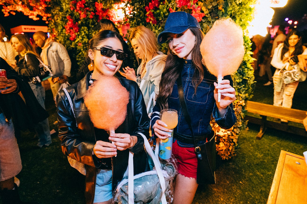 Once inside, they were treated to a wall of never-ending treats like chocolate-covered almonds and cotton candy in a variety of flavors inspired by Curio Collection by Hilton properties around the world (think: “Nashville Old Fashioned” in celebration of Hotel Fraye Nashville and “Montera Sangria” as homage to Hotel Montera Madrid). The free custom belt bags proved to be a hit among the festival crowd, with plenty of guests being spotted using the merch throughout the party.