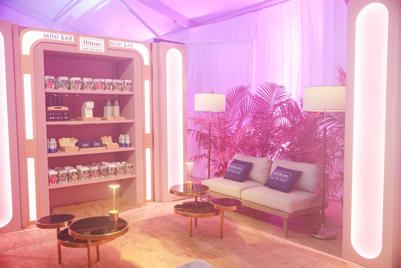 THE VIBE: Hilton invited NYLON House partygoers into the Stay at NYLON House Lounge to relax, unwind, and experience the transformative power of a great stay. Rooted in Hilton’s legendary level of comfort, the bespoke lounge destination allowed guests to snap FOMO-inducing photos on a hotel-quality bed complete with soft linens and cloud-like pillows, or simply enjoy a peaceful moment to recharge on seating comprised of cozy couches and chairs.