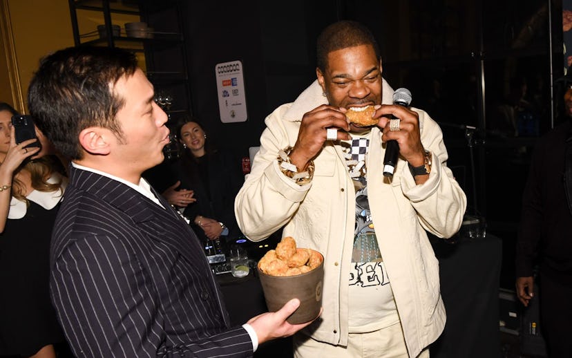 Shortly after, Busta Rhymes performed a 20-minute set — including “I Know What You Want,” his 2002 hit featuring Mariah Carey — gave nods to hip-hop’s 50th birthday, and praised Kim before diving into a drumstick, which he exclaimed was “crazy.” Later in the evening, the party continued with karaoke and Khee Soju bombs in the back room. But I left long before this: I was already so full.