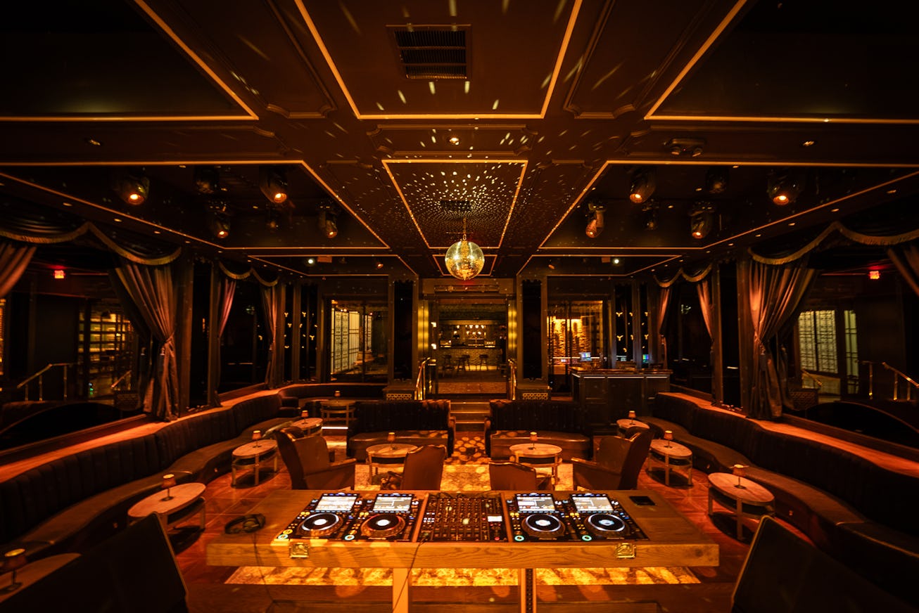 Past the bar that offers a drink named after Avicii, British singer-songwriter SG Lewis — known for his collabs with artists like Tove Lo and Dua Lipa — is spinning inside a custom DJ booth built on automatic hydraulics. (The Dare and Ahmed Spins are also booked to play this weekend, with upcoming acts including DJ Tennis and Ariel Vromen.) The crowd, or at least those who could make it inside, take to the all-new dance floor in droves under a big disco ball.