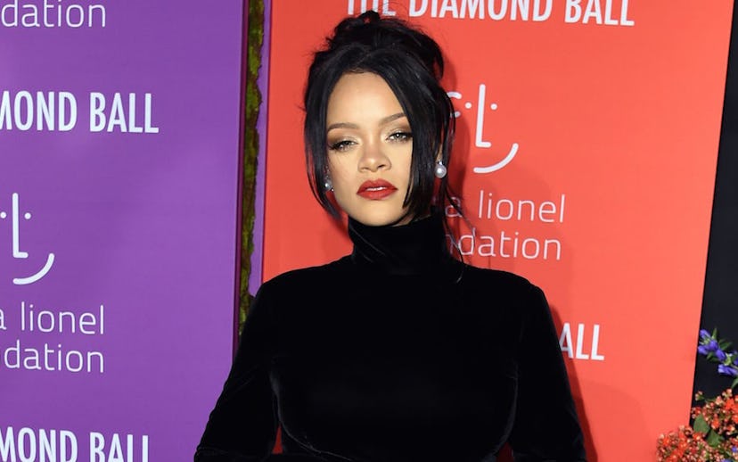 Rihanna wore a velvet gown to her annual Diamond Ball, and it's peak cozy-chic. The look, designed by Givenchy, features a turtleneck and a mermaid skirt that stops short of the floor to reveal an unexpected detail: a white hoop skirt underlay.