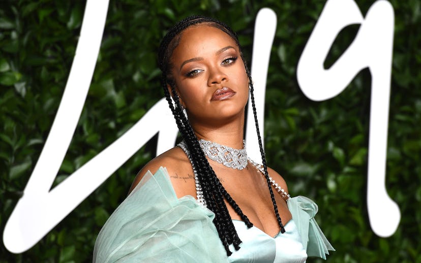 Move over millennial pink: "Seafoam Fenty" is here to dictate all of our style choices from this point forward — at least if Rihanna has anything to do with it. When the musician and fashion/beauty mogul arrived on the Fashion Awards 2019 red carpet in London on Monday night, it was hard not to be totally captivated by her monochrome custom Fenty look and cornrows; it took us a solid 20 minutes to even notice A$AP Rocky standing at her side. Rihanna attended the event to celebrate her Urban Luxe category win for her LVMH label Fenty, and was handed the award by none other than Janet Jackson.