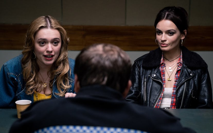 Here's what we do know: it seems that favorites Maeve (Emma Mackey) and Aimee (Aimee Lou Wood) have dived into friendship with full-force: a photo revealed by Netflix suggests they're already getting into some very-Thelma & Louise antics. In the image, the two sit behind a table being questioned by a police officer, with a newly brunette Maeve smirking as Aimee details their story.