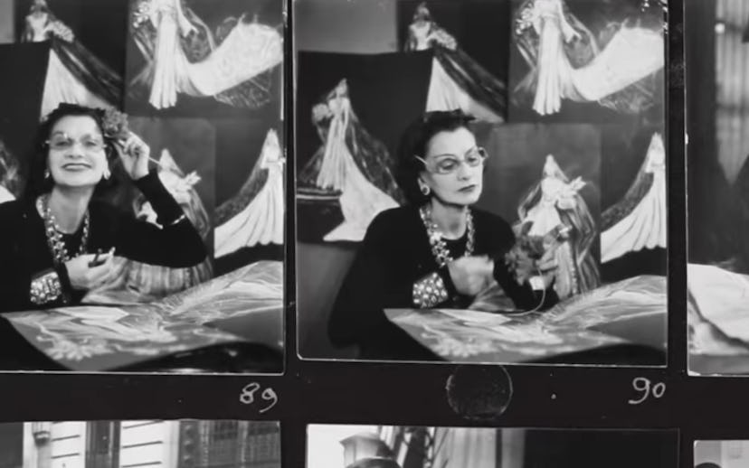 The video then shows more recent fashion shows, with footage of model and Chanel ambassador Lily-Rose Depp winking while walking the runway in a ruffled pink dress and, later, with the late Chanel creative director Karl Lagerfeld. Soundtracked by Grimes, images of all our favorite celebrities and brand ambassadors—Kristen Stewart, Tilda Swinton, Pharrell, Natalie Portman, Margot Robbie, and more—flash across the screen amidst vintage advertisements and B-roll footage. We, of course, also see Coco Chanel herself in a black-and-white film reel, smiling from behind the design table.