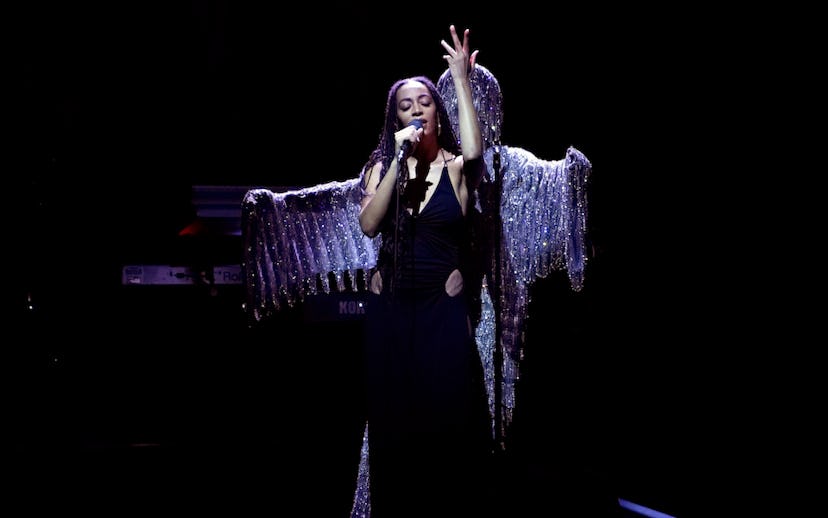 Late night television was blessed with nine minutes of Solange on Monday evening, and it's the only early holiday gift we really needed. The singer wove together songs from her 2019 album and art film When I Get Home for her appearance on The Tonight Show. If you've never had the opportunity to have your mind blown at a live Solange gig, this TV performance is about as close as it gets to the real thing: All the hair flips, microphone-lassos, and otherworldly vocals packed into a short clip that can be watched over and over again from the comfort of your couch.