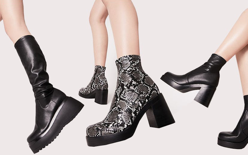 Two different silhouettes are now available to shop from the collab: the Hooper Platform Boot and the Duggie Platform Knee-High Boot. The Duggie — arguably the better option for those of you who are still very in-touch with your emo phase — is only available in black, while the Hooper comes in both black and a neutral snakeskin print. Both pairs retail for $119, and are available at Urban Outfitters and Steve Madden.