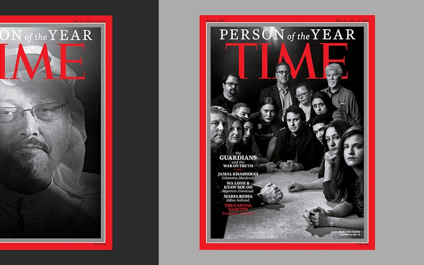 TIME has named "The Guardians and the War on Truth" its 2018 Person of the Year. This includes four separate cover features, highlighting journalists Jamal Khashoggi, Wa Lone and Kyaw Soe Oo, Maria Ressa, and those at the Capital Gazette, all of whom have risked, and many of whom have lost, their lives through their work in the past year.