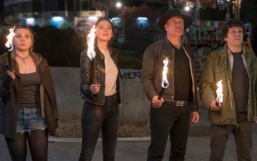 After 10 years, the Zombieland crew still has plenty of undead to fight off. In the trailer for Zombieland: Double Tap, released today, Little Rock (Abigail Breslin) runs off with a stoner boy, played by Avan Jogia, just after moving into the White House with Columbus (Jesse Eisenberg), Wichita (Emma Stone), and Tallahassee (Woody Harrelson).
